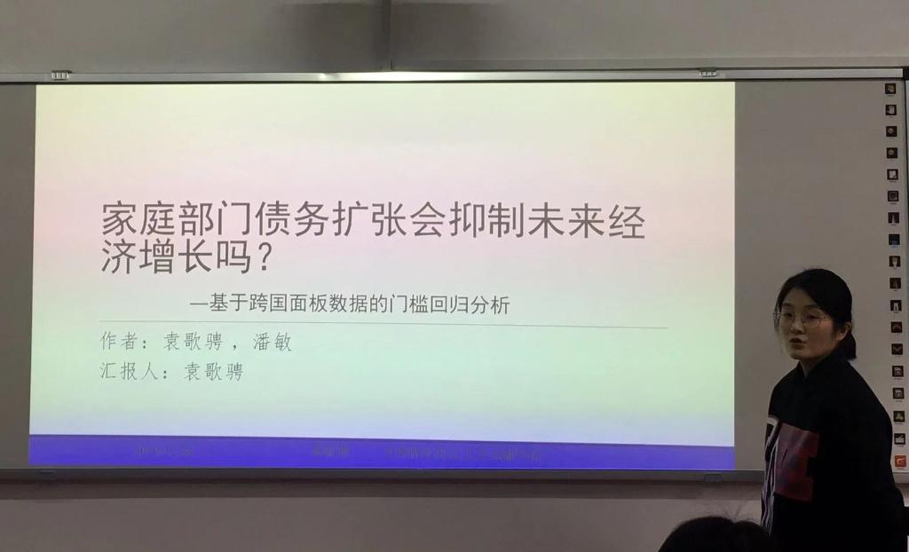 首先由中南财经政法大学袁歌骋助理教授就论文《家庭部门债务扩张会抑制未来经济增长吗?——基于跨国面板数据的门槛回归分析》进行报告,并由西南财经大学张琳副教授进行评论。基于跨国面板数据建立门槛回归模型,发现家庭部门债务变动对经济增长的影响存在单一的“门槛效应”,家庭部分债务扩张对未来经济增长具有明显的先促进后抑制的“门槛”作用,同时在样本期间发现金融发展水平提升较多、城市化率增加更大和收入水平增长更快的经济体家庭部门债务扩张对未来经济增长存在明显的先促进后抑制的“门槛效应”,而金融发展水平提升较少和收入水平增幅较低的经济体家庭部门债务扩张对未来经济增长不存在明显的 “门槛效应,此外城市化率增加较小的经济体在越过门槛值之前对未来经济增长作用不明显。