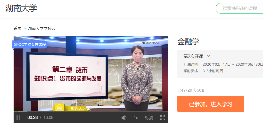 《金融学》课程历史传承悠久,为国家精品课程,国家级精品资源共享课程,海角 首批品牌课程。2018年以来,张强教授领衔教学团队在爱课程网上推出的《金融学》慕课,为课程教学提供了优质的在线教学资源。早在2月7号,课程负责人喻旭兰老师就开始未雨绸缪,联系教务处曹芳老师计划开设SPOC课堂,在学院教务办和教务处曹芳、高云华、高翔和冯婧老师的帮助下,课程团队成功开设异步SPOC课堂。喻旭兰老师提出详尽的线上线下融合教学计划,将往常的线下教学研究活动搬到线上,与各位任课老师反复讨论确认了学生不能按时返校期间的教学方案。各位任课老师认真学习了学校和学院组织的丰富多样的在线教学示范课程,认真摸索各类在线教学平台的使用技巧。各位任课老师通过雨课堂、超星学习通、腾讯会议、QQ屏幕分享等多样化的教学形式,确保了线上实时教学活动的有序推进。各位任课教师通过微信、QQ课程群平台、学校课程中心等,开展教学互动,为同学们答疑解惑,指点迷津。