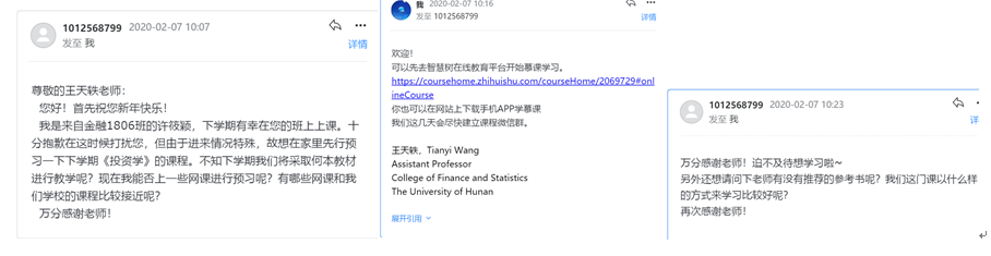 早在2019年秋季学期末,投资学教学团队在刘轶老师和晏艳阳老师主持下,多次召开教研会议,商讨2020年春季学期投资学课程混合式教学改革的设计方案,通过了线上慕课学习加慕课平台互动研讨加课堂案例学习的教学方案。直到2020年1月17日(农历小年),教学团队还在微信教研群进行最后方案的协商。