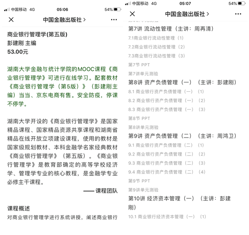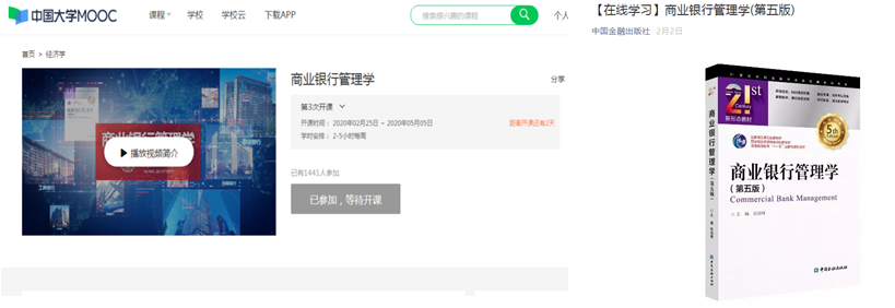 前期的慕课制作和多次开课为疫情期间保障《商业银行管理学》线上教学等质同效提供了良好的条件,课程团队的提前谋划为疫情期间的线上教学打下了坚实的基础。今年1月初,在疫情发生前,彭建刚老师便预先在爱课程网做好了2月25日新一期线上开课的准备,公开了前两期开课的教学资源,供同学们提前自学预习。疫情发生后,2020年2月2日,中国金融出版社即在其微信公众号及时推出了海角 在线学习《商业银行管理学》的慕课和海角 主编的金融学专业名家经典教材《商业银行管理学》(第五版)。