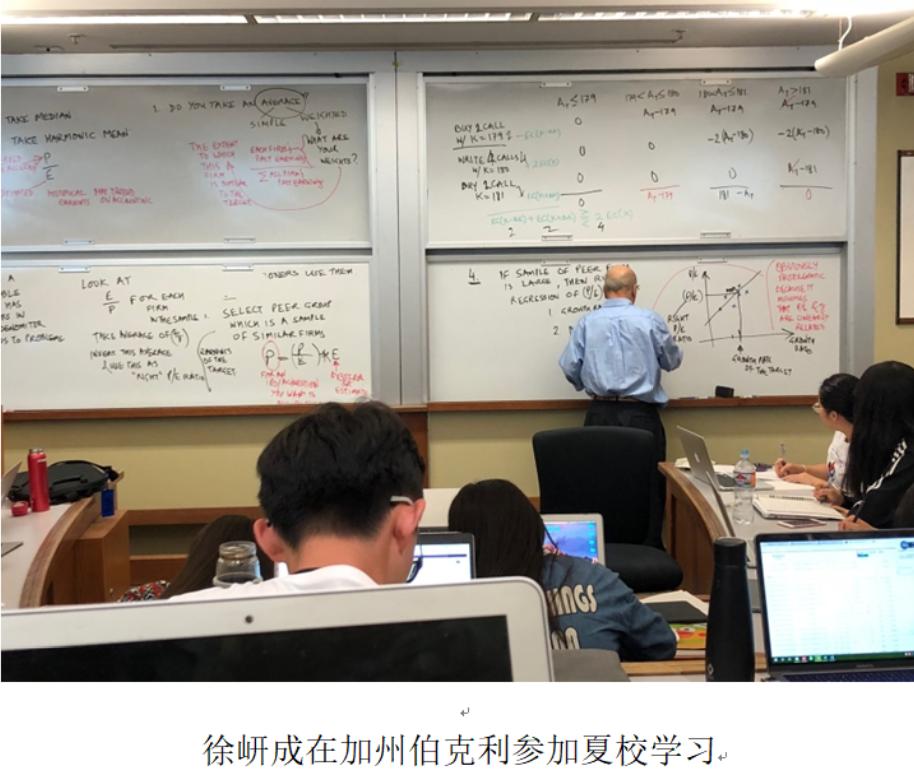 在大二上学期的寒假中,他积极准备首战托福,为暑期学校做准备。在大二升大三的暑假,他赴加州伯克利参加了为期两个月的summer school项目;在这个项目里,他选修了哈斯商学院的Corporate Finance Analysis, International Business课程,提升自己的量化分析背景,同时也有利于未来赴伯克利深造。