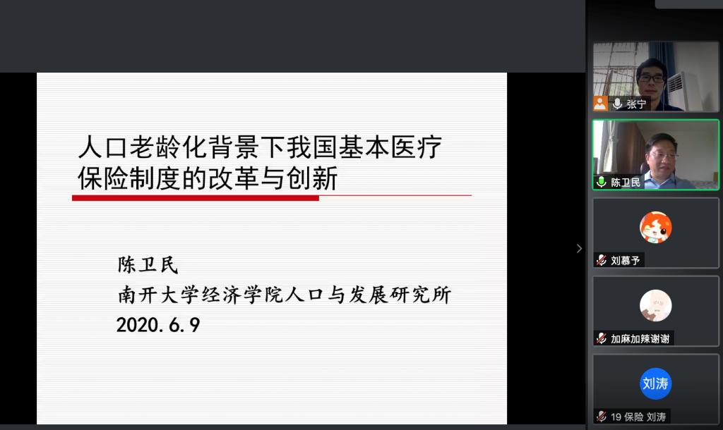 疫情期间“云端学习”的学术氛围愈加浓厚,2020年6月9日第257期金融与统计论坛在腾讯会议线上举行。此次论坛主题为:人口老龄化背景下我国基本医疗保险制度的改革与创新。主讲人为南开大学经济学博士陈卫民教授。此次论坛由海角 张宁副教授主持,海角 教师及硕、博士生踊跃参加此次论坛。