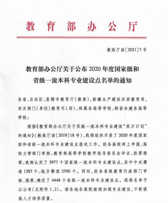 近日,教育部发布《关于公布2020年度国家级和省级一流本科专业建设点名单的通知》(教高厅函〔2021〕7号),海角 保险学专业入选国家级一流本科专业建设点。