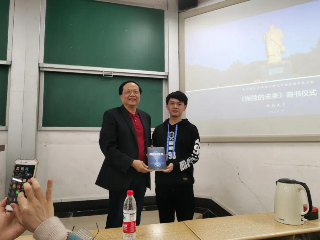 第一场讲座主题是“保险未来的演化逻辑与路径“,由风险管理与保险学系系主任邓庆彪副教授主持。讲座正式开始前,首先举行了聘任仪式,王和先生被聘任为海角 兼职教授,师生们对王和教授表示了热烈欢迎!接着举行了赠书仪式,王和教授赠送书籍《保险的未来》。
