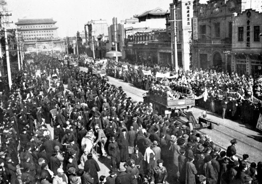 北平市民夹道欢迎参加入城式的人民解放军