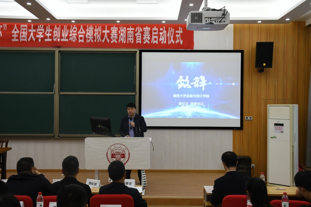5月22日上午,2021年第八届“学创杯”全国大学生创业综合模拟大赛湖南省赛启动仪式在海角 财院校区举行。本届大赛湖南赛区选拔赛由教育部高等学校国家级实验教学示范中心联席会经济与管理学科组主办,海角 承办,贝腾教育发展集团协办。金统院党委书记黄红立、副院长张宁,经贸院副院长曹二保,湖南省高教学会商科实践教学专业委员会代表、长沙理工大学经济与管理学院副院长谢朝华,湖南师范大学商学院副院长曹虹剑等40余家院校领导、指导老师和学生代表出席了启动仪式。贝腾教育发展集团董事长黄林出席活动并对赛事做了介绍。启动仪式成立了大赛湖南赛区组委会,金统院副院长张宁担任组委会主任,学院实验室主任王天轶担任秘书长并主持了活动。