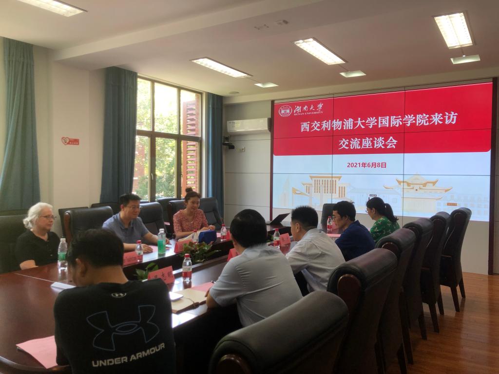 2021年6月8日下午,西交利物浦大学国际商学院徐笑波副院长、Dr. Ellen Touchstone副院长、招生负责人周赟老师来海角 调研交流。院长潘敏、副院长吴志明、副院长张宁及研究生、本科、科研秘书等出席会议。