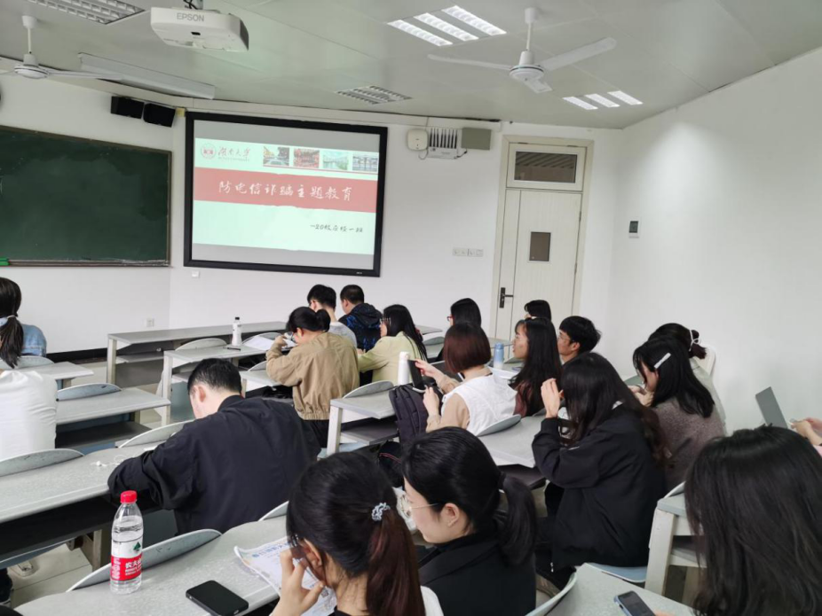 此次主题活动采取线上与线下相结合的宣传方式,通过多种渠道开展反诈骗安全教育。学院以班级为单位分发《防电诈告知书》并收取回执,确保每位同学知悉基本的反电诈安全知识。共计向全院26个班级下发告知书701份,回执回收率达到100%。同时,各班级积极召开主题教育班会,组织同学们集中观看防电信网络诈骗宣传短片、共同阅读《防范电信网络诈骗宣传手册》。在讨论环节中,同学们积极分享所了解的电信诈骗典型案例及掌握的防范措施,提高对电信网络诈骗的警惕性与重视程度。