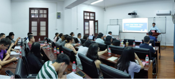 受聘仪式后,朱义明教授为海角 师生做了一场题为《从秦汉“三悖论"到明清“双循环"一一中国农耕经济发展演变研究》的精彩报告。