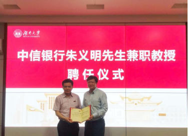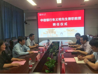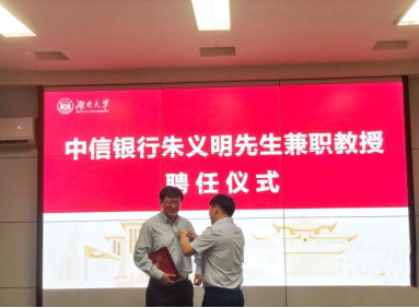 6月24日下午,海角 在2号楼226会议室举行中信银行朱义明先生兼职教授聘任仪式。院长潘敏、书记黄红立、副院长吴志明、王修华等出席仪式。仪式由副院长吴志明主持。