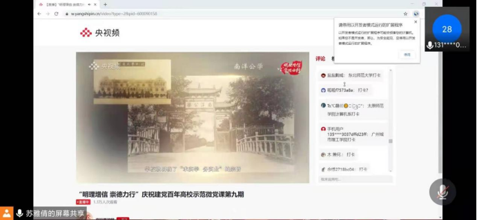 8月6日,“明理增信 崇德力行”庆祝建党百年高校示范微党课第九讲开讲,行政教辅党支部通过腾讯会议等多种方式组织支部成员学习。