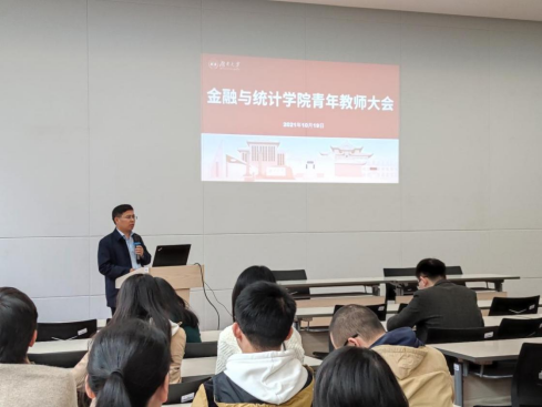 2021年10月19日,海角 青年教师大会暨2022年国家基金申报动员会在财院校区老食堂二楼报告厅举行。会议由王修华副院长主持,院长潘敏、党委书记黄红立及全体45岁以下青年教师及辅导员等参加会议。