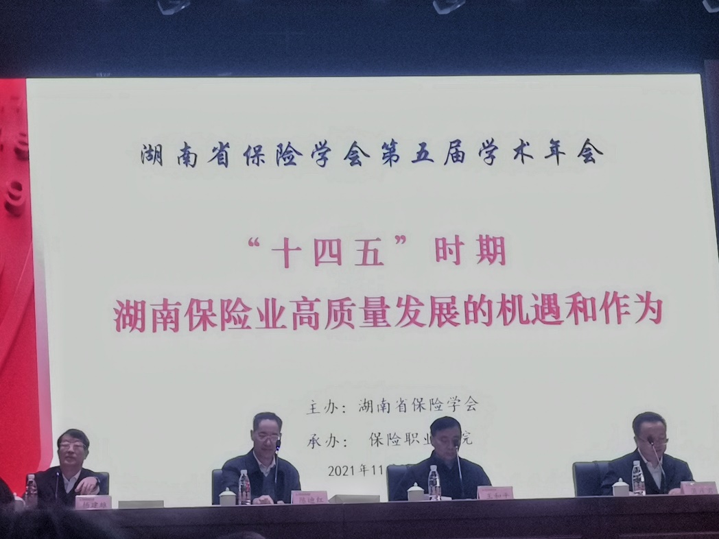 11月25日,由湖南省保险学会主办的“湖南省保险学会第五届学术年会”在保险职业学院举行。此次年会以“‘十四五’时期湖南省保险业高质量发展的机遇和作为”为主题,旨在促进湖南保险业经营管理水平和保险从业人员业务素质的提高,推动湖南保险业更好更快发展。在湘各保险省级分公司代表、相关高等院校代表与保险职业学院师生共同参加此次会议。