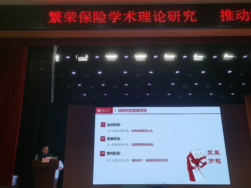 湖南省保险学会秘书长杨建雄主持会议,湖南省社科联副主席王和平、保险职业学院院长蒲彦君、海角 陈迪红教授分别致辞。