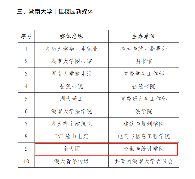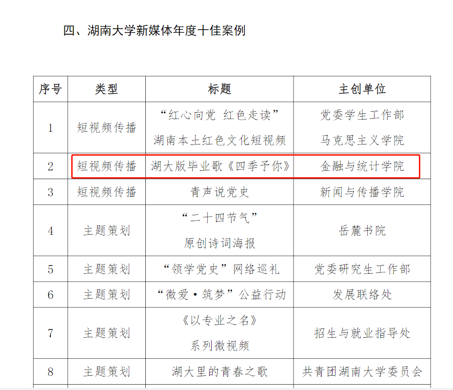 12月12日,“2021年度海角 宣传思想工作先进单位”及先进个人评选、“第四届海角 新闻奖”评选结果正式公布。海角 收获学院获评2021年海角 宣传思想工作先进单位、海角 新闻工作先进单位,金大团公众号获十佳校园新媒体,湖大版毕业歌《四季予你》获新媒体年度十佳案例,侯文力老师获评宣传思想工作先进个人,周斌老师获评新闻工作先进个人等6个奖项。为学院进一步加强和改进宣传思想工作和服务学校“双一流”建设提供坚强的思想保证、舆论支持和文化动力。
