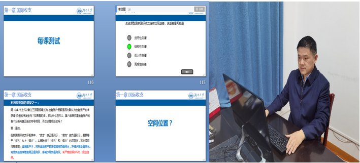 课程建设成果“传承+创新、精品+共享:国际金融学课程建设30年的研究与实践”荣获2019年湖南省教学成果一等奖。在2020年春季抗击疫情期间,团队坚守教育以抗疫,恪尽职守以分忧。一方面,关注民生,积极为疫情防控建言献策;另一方面,关爱学生,扎实推进混合式教学。这为课程后续在线教学改革提供了的实践经验的积淀。