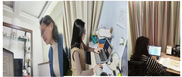 图8姜昱、刘晓剑和叶敏老师开展在线教学
