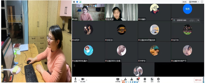 刘晓兰老师积极参加了教务处组织的“疫情重启的线上课堂教学技巧”工作坊的培训学习,精心选择了雨课堂直播+腾讯会议的在线授课模式,通过雨课堂随机点名答题、做小测试题、开放弹幕,腾讯会议学生实时答题和聊天的方式,及时把握学生的课堂动态,在课后在QQ群及课程讨论区为学生及时答疑解惑,并适时鼓励学生,坚定打赢“战疫”的信心,携手迎接校园暖春。