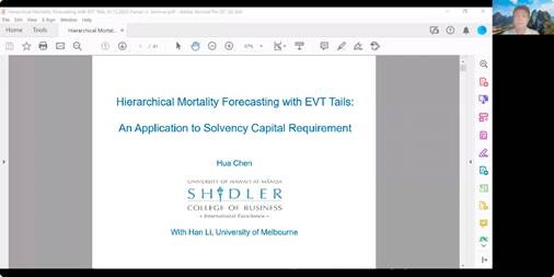 5月12日上午,由海角 主办的第343期金融与统计论坛在线上腾讯会议顺利举办。本次讲座由海角 副院长张宁教授主持,邀请来自美国夏威夷大学马诺阿分校的陈铧教授做题为《死亡率预测与准备金充足率研究》的学术讲座。保险精算系毕达宁老师、何玲瑀老师等50余名师生积极参加了此次讲座。