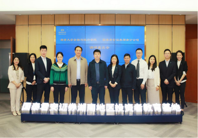 随后,黄红立一行前往活动第二站,在国泰君安股份有限公司湖南省分公司党委书记、总经理胡兰等领导的陪同和基地讲解员的引导下,实地参观国泰君安证券湖南地区投资者教育基地,并通过座谈会的形式了解公司近年在用人育人、干部培养上的政策以及校友的工作、生活和发展情况,听取用人单位对海角 毕业生的满意度和毕业生对学院的意见建议,双方就后续在实习基地建立、管培生培养、助学就业、投教进校园,甚至助推校企战略合作等工作上达成共识。