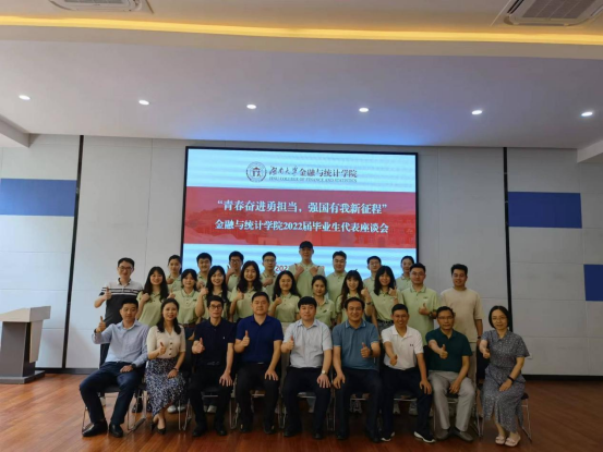 本科生代表王轶倩说,感谢学院的老师在成长路上给予我的建议与帮助,感谢学院丰富完善的培养体系,让我收获了前往新加坡国立大学进一步攻读金融硕士的机会。硕士生代表鲁斯玮,十分感谢学院搭建的学术体系,帮助她在学术研究上不断成长。博士代表徐照宜,谈到海角 是实事求是的精神图腾,财院是经世济民的文化象征。作为湖大人、金统人,要无愧于师长教诲、无愧于祖国使命!