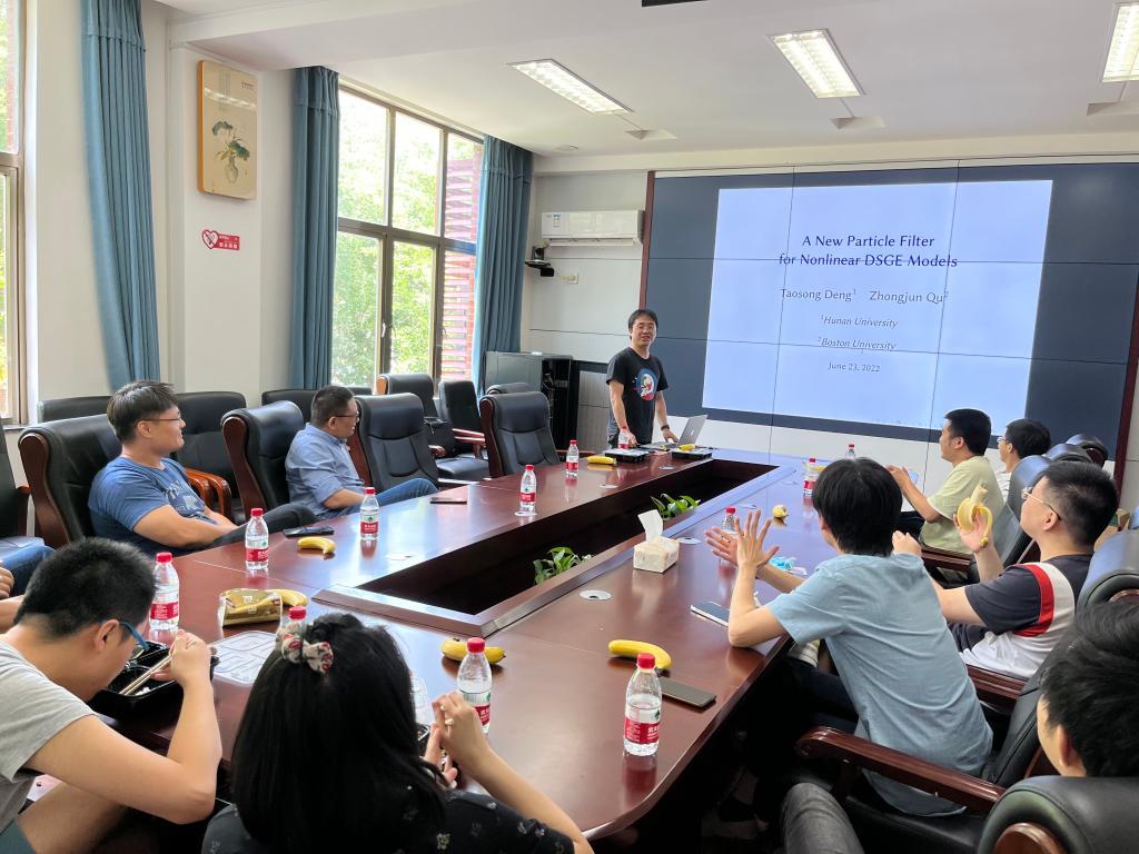 2022年6月23日学院“第八期午餐研讨会”在红楼2号楼226学术报告厅举行。此次研讨会由金融工程系助理教授邓滔崧老师做论文分享,共有二十余名师生参加本次午餐研讨会。