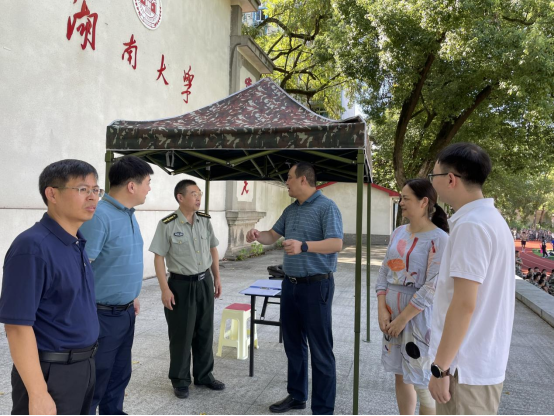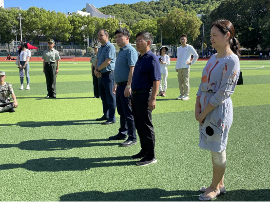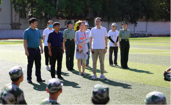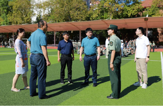 院领导走进操场,观看了新生训练,并向有关人员详细询问军训工作进展、日常管理等情况,与辅导员、教官、参训同学亲切交流,了解他们带训、参训的感受;走访了军训督训点、医疗服务点等地,仔细询问军训工作的后勤保障情况,并代表学院向辛勤付出的军训教官、新生助理、军训服务保障人员表示衷心感谢。