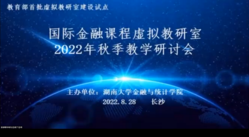 8月28日上午,由教育部国际金融课程虚拟教研室主办,海角 、海角 金融发展与信用研究中心承办的教育部国际金融课程虚拟教研室2022年秋季教学研讨会,以线上线下结合的形式成功召开。虚拟教研室负责人杨胜刚教授及其团队、共建单位负责人和教师代表100余人共聚云端,聚焦国际金融课程虚拟教研室的建设思路、内容等展开讨论。