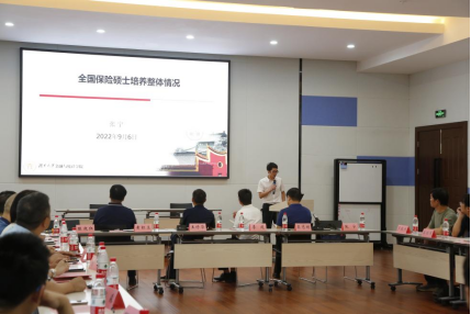 在保险人才培养座谈会环节中,海角 张宁副院长作为全国保险专业学位研究生教育指导委员会委员向与会人员介绍国内保险专硕培养整体情况。他从保险专硕培养单位的开办学校数、开办时间、招生规模与专任教师队伍等方面进行介绍,他指出,此次聘任的7位校外导师均是保险业资深专家,有着丰富的实务经验,通过此次校外导师的聘任,学院做实了保险专硕双导师培养制度,为高质量应用型保险人才的培养奠定了坚实的基础。