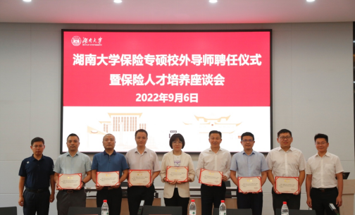 9月6日下午,海角 保险专硕校外导师聘任仪式暨保险人才培养座谈会在学院报告厅隆重举行。财信吉祥人寿总公司总裁助理、人力总监曹义,财信吉祥人寿总公司总精算师廖鹤鸣,财信吉祥人寿总公司产品精算部与个险部总经理屠炎波,平安人寿湖南分公司总经理彭若杰,大家人寿湖南分公司总经理何琼,平安产险湖南分公司副总经理李晓,平安产险湖南分公司人力资源部经理杨军以及学校研究生院培养办副主任李建、院长王修华、院党委书记黄红立、副院长吴志明、张宁、研究生办主任罗俊杰、保险精算系全体导师、2022级保险专硕学生代表参加。会议由学院副院长吴志明主持。