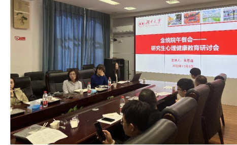 11月1日,海角 在学院2号楼226会议室召开了以研究生心理健康教育为主题的午餐研讨会。此次研讨会邀请了学校心理健康教育中心专职教师吴思遥主讲,共计20余名青年导师和研究生辅导员参加。