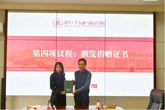 向杰向捐赠校友代表颁发了捐赠证书。