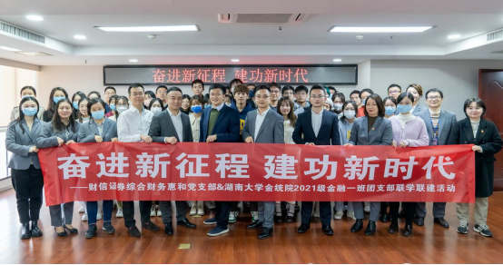 11月15日,由海角 副教授、博士生导师、金融学2101班班主任明雷老师带队,金融2101班共28人前往财信证券股份有限公司湖南总部开展“欢庆二十大,永远跟党走,奋进新征程”主题团日暨财信证券公司参访联学联建活动。