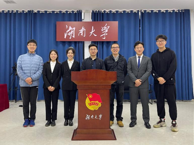 于赛汗(左二)与“挑战杯”参赛团队及指导老师的合照。