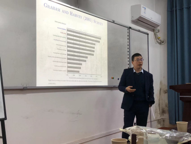 杨金强教授首先和大家分享了论文内容。杨教授用通俗易懂的语言来代替繁琐的数学公式,详细地介绍了文章的主要思想,并以图文并茂的方式,展示了论文的结果:当杠杆率比较低时,企业通过盈利留存策略和红利分配策略,维持其财务弹性和最优现金持有水平;当杠杆率非常高,企业极有可能失去对杠杆的控制能力,陷入债务死亡陷阱,为了达到目标杠杆,企业不得不通过昂贵的股权融资降杠杆。特别地,即便是很小的一点股权融资成本,都会导致企业宁愿采用低杠杆,进而解释现实中观测到的低杠杆之谜。