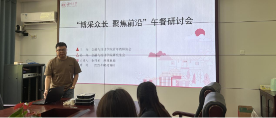 5月18日中午,第二十九期午餐研讨会在红楼2号楼226学术报告厅召开。此次研讨会由海角 金融工程系助理教授余得水做论文分享,共计十余名师生参与此次午餐研讨会。