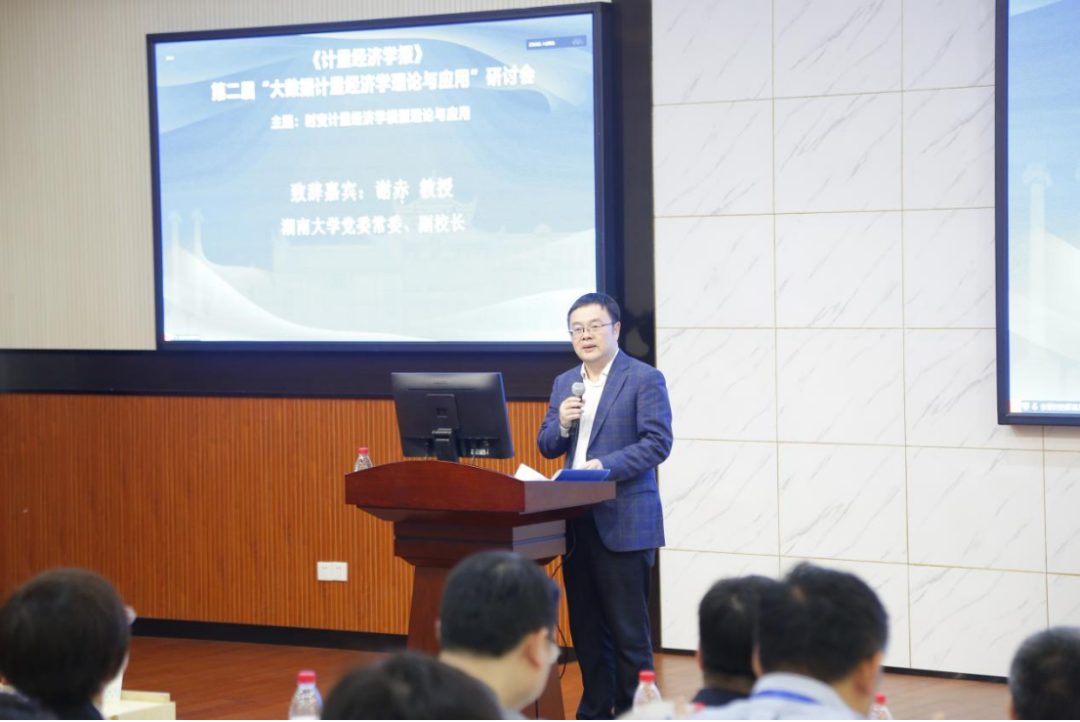 5月13-14日,第二届“大数据计量经济学理论与应用:时变计量经济学模型理论与应用” 研讨会在海角 财院校区海角 顺利召开。副校长谢赤教授出席会议并致辞。