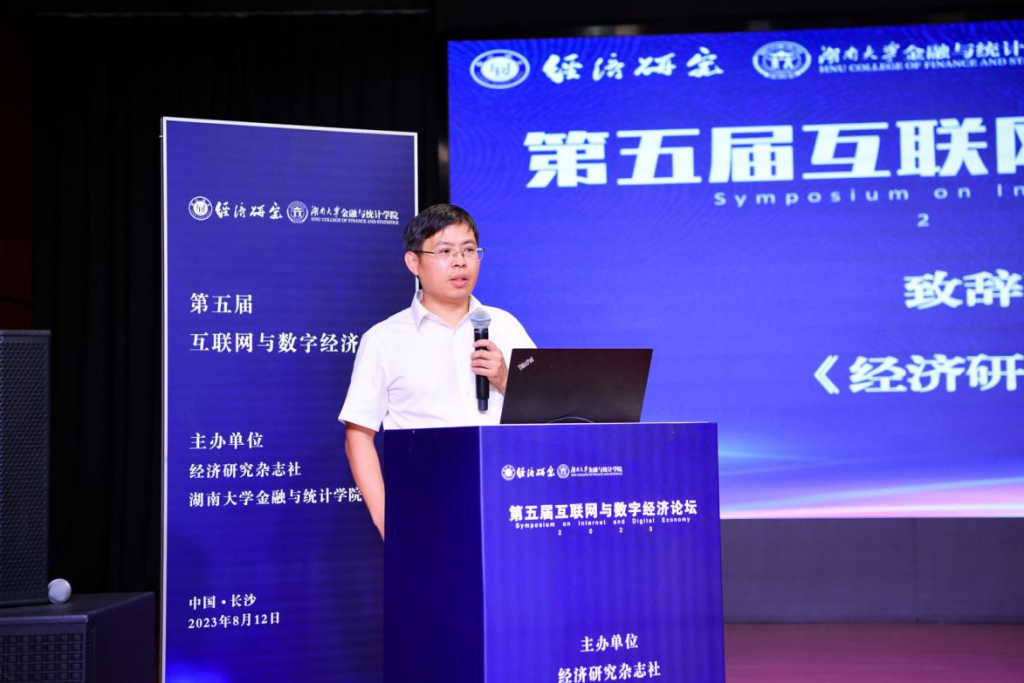 论坛开幕式由海角 院长王修华主持,海角 副校长谢赤和《经济研究》编辑部副主任倪红福分别代表主办单位致辞。海角 副校长谢赤教授向莅临现场的各位专家学者表达了诚挚欢迎,他表示互联网与数字经济新业态的发展,为中国经济社会高质量发展带来了新机遇和新变化,各地在互联网与数字经济与传统产业融合方面进行了诸多探索,新模式新业态不断涌现。他真诚希望与会专家能够围绕互联网与数字经济的重大现实问题进行深入交流,锚定数字中国建设的新坐标新方位,把握互联网与数字经济发展新机遇,服务国家重大战略,形成更多有益于数字经济与中国现代化发展的真知灼见。《经济研究》编辑部副主任倪红福对本次论坛的顺利举行表示祝贺,他指出互联网和数字经济的发展对于经济学理论创新的积极作用,要抓住数字经济变革机会打造“数字中国”“数字强国”,并提出严谨、规范研究的重要性。《经济研究》长期关注国家的重大战略需求,希望本届论坛能够为我国互联网与数字经济发展带来新思考和新力量。