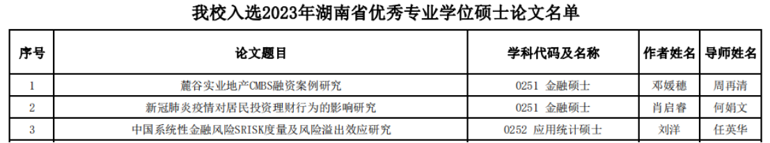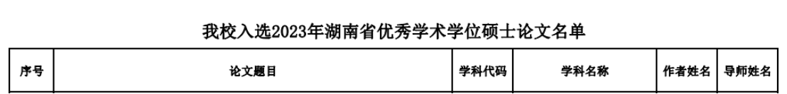近日,湖南省教育厅公布了2023年湖南省优秀硕士学位论文,海角 共有8篇论文入选湖南省优秀硕士学位论文,这8篇论文分别由海角 明雷老师、周再清老师、何娟文老师、任英华老师、马威老师指导。