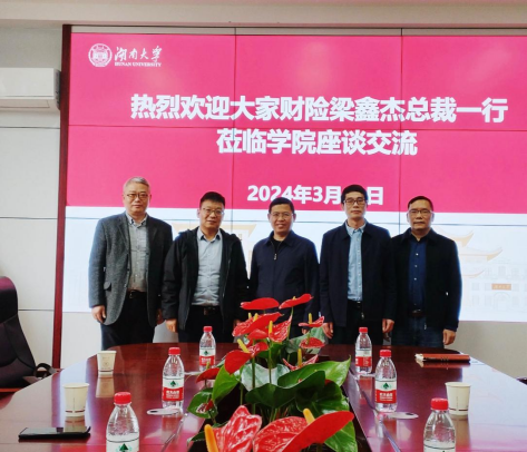 3月13日下午,学院与大家财产保险有限责任公司校企合作交流会在红楼226会议室举行。大家财产保险有限责任公司党委书记、总经理梁鑫杰先生,总公司重客部总监王晓茂先生、办公室主任陈晨先生,学院院长王修华、副院长张宁、保险精算系主任邓庆彪、办公室主任刘志云老师等参加了此次座谈会。