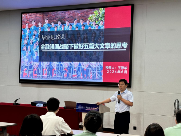 6月20日上午,海角 2024届毕业生思政课在财院校区老食堂二楼报告厅举办。学院院长王修华以《金融强国战略下做好五篇大文章的思考》为题为毕业生授课,2024届全体毕业生参加。