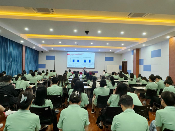 王修华结合中央金融工作会议,引用中美经济、金融领域大量实例,为同学们讲授“金融强国”战略目标及“科技金融、绿色金融、普惠金融、养老金融、数字金融”五篇大文章。他用详实的数据、生动的语言,为毕业生们分析了五篇大文章“大”在哪里,即将毕业的金统学子们如何结合专业和自身实际,从四个方面做好大文章。