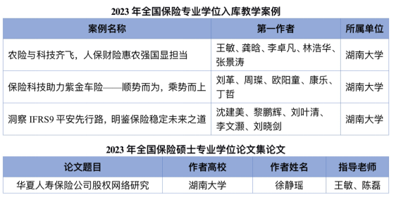 经培养单位自主申报,保险专业学位研究生教育指导委员会秘书处组织形式审查、双盲随机分组、匿名通讯评审、专家组会审等程序,共评审出2023年全国保险专业学位入库教学案例23篇,提名入围案例11篇。其中,海角 王敏老师团队编写的《农险与科技齐飞,人保财险惠农强国显担当》、刘革老师团队编写的《保险科技助力紫金车险——顺势而为,乘势而上》和沈建美老师团队编写的《洞察IFRS9平安先行路,明鉴保险稳定未来之道》3篇教学案例从层层评选中脱颖而出,成功入选2023年全国保险专业学位案例库。今年入选的案例总数创海角 参赛以来的最好成绩,入选总数连续2年位居各培养院校前列。