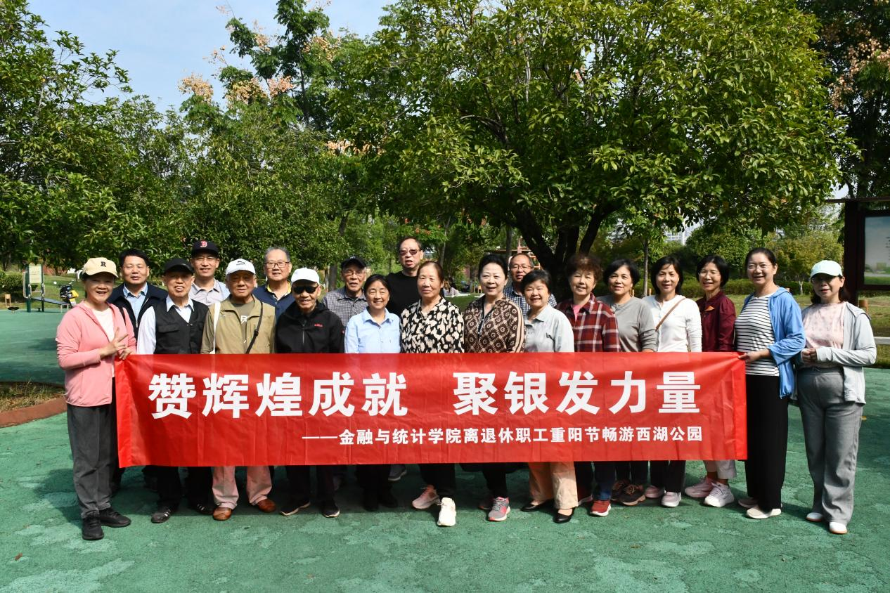 本次活动组织学院离退休老同志一同前往西湖公园进行秋游。在西湖公园中,老同志们悠然漫步,尽情欣赏秋日美景,深切感受自然之美。