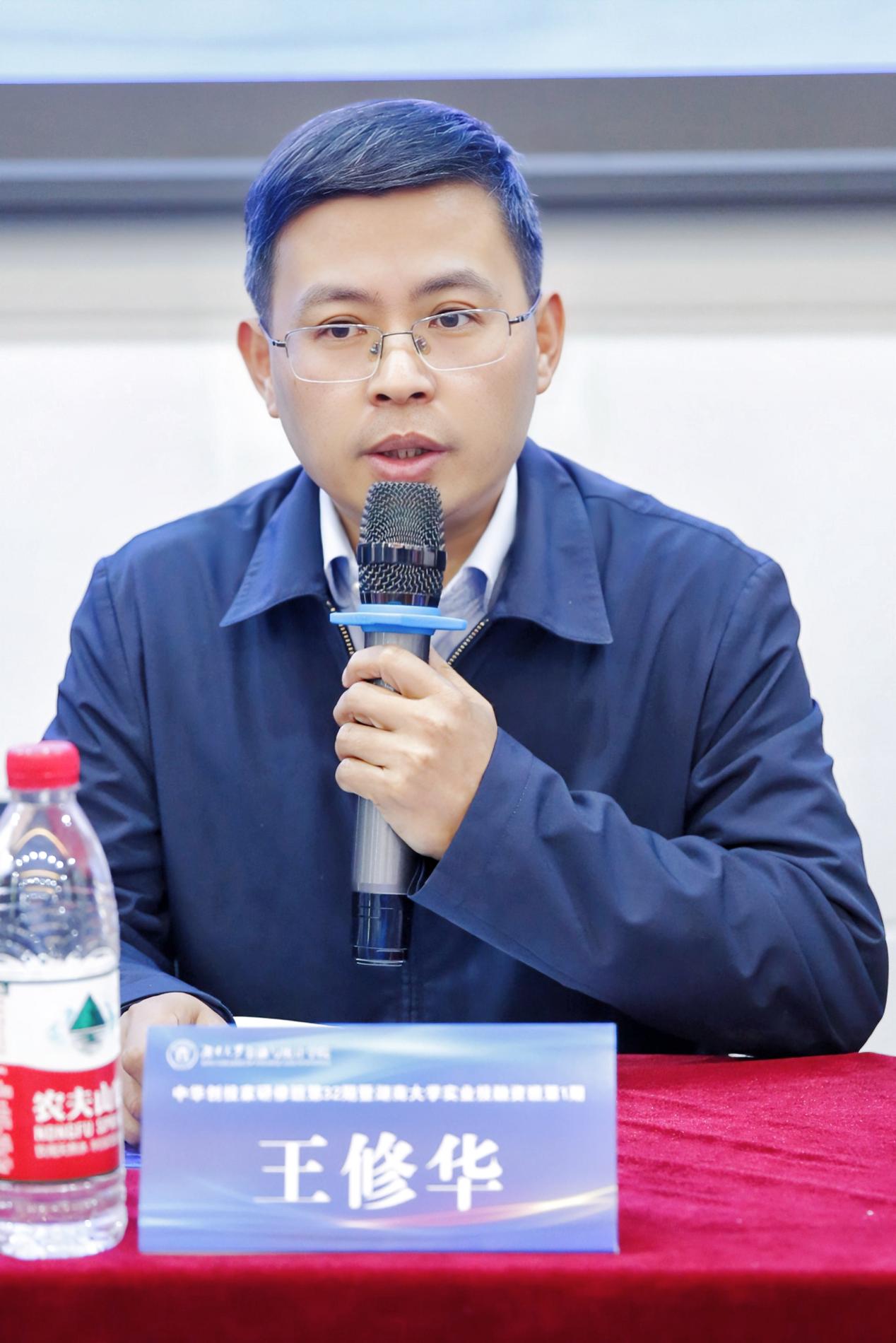 中华创投家同学会会长、浙江钱塘江金研资产管理有限公司创始合伙人、总裁王仑同志在开班典礼上致辞,他表示中华创投家研修班首次走进海角 ,与敢为人先的湘商精神交相融合,在岳麓山下续写中华创投的发展新蓝图。期望同学们以乱云飞渡仍从容的心态、重整行装再出发的动力、咬定青山不放松的毅力、直挂云帆济沧海的魄力进行学习。