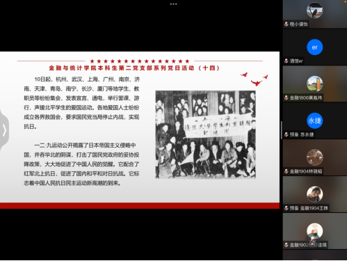 本活动由海角 本科生第二党支部支委牵头举办,支部副书记许筱颖同志领学,以线上观看视频、分享经历等形式使同学们对一二九的历史和精神有更深入的了解,让同学们进一步明白新时代时代青年人的责任与担当,在“两个一百年”奋斗目标的历史交汇点努力奋斗。在新时代彰显新作为,努力做到不负组织培养、不负人民期盼。参与学习活动的党员纷纷表达了自己的学习感想: