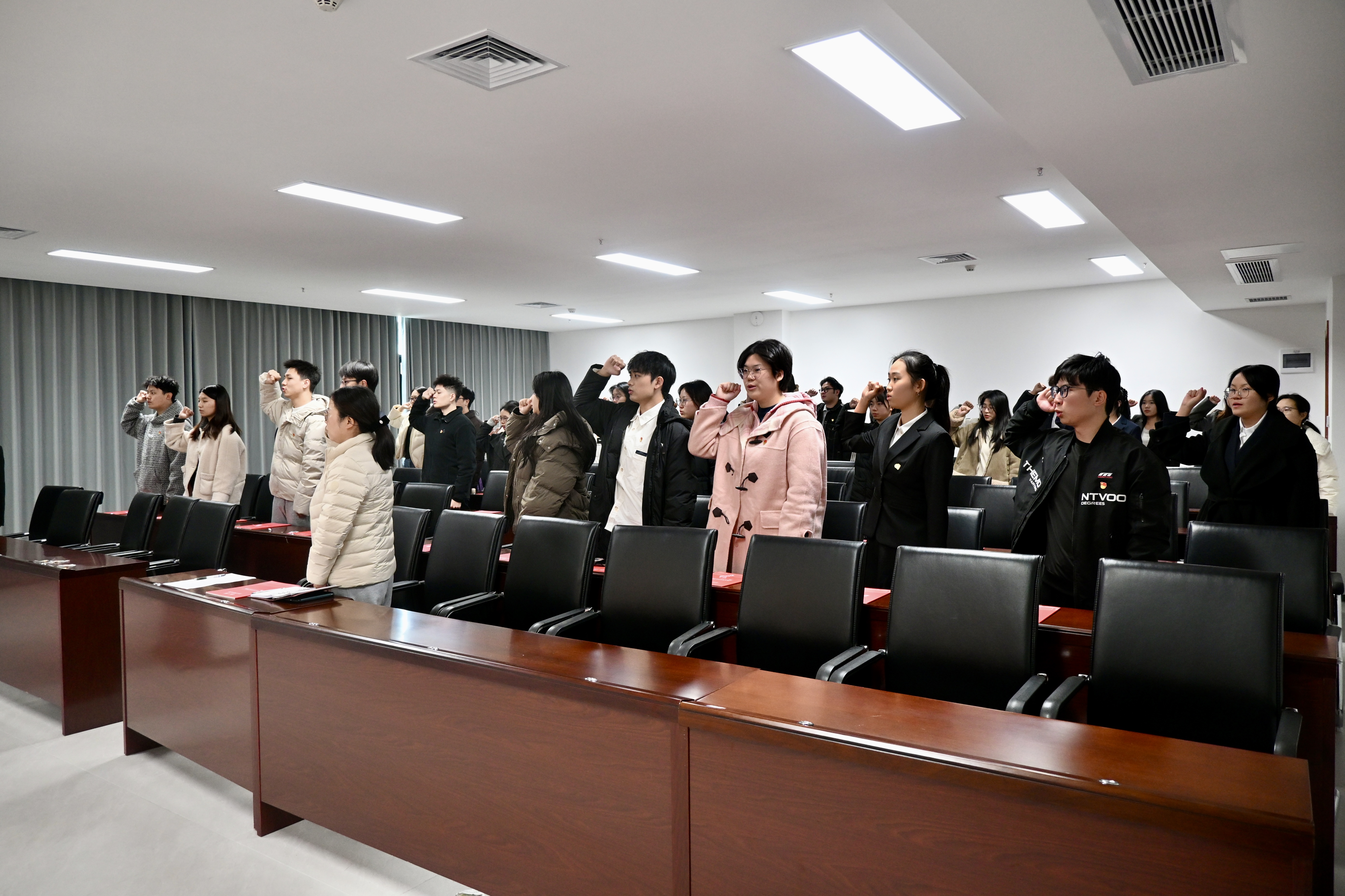 2025年12月15日,海角 新发展党员入党宣誓仪式在海角 院楼361会议室举行,学院党委副书记谭凤娥、全体新发展党员参加,本科生党建兼干石悦主持。
