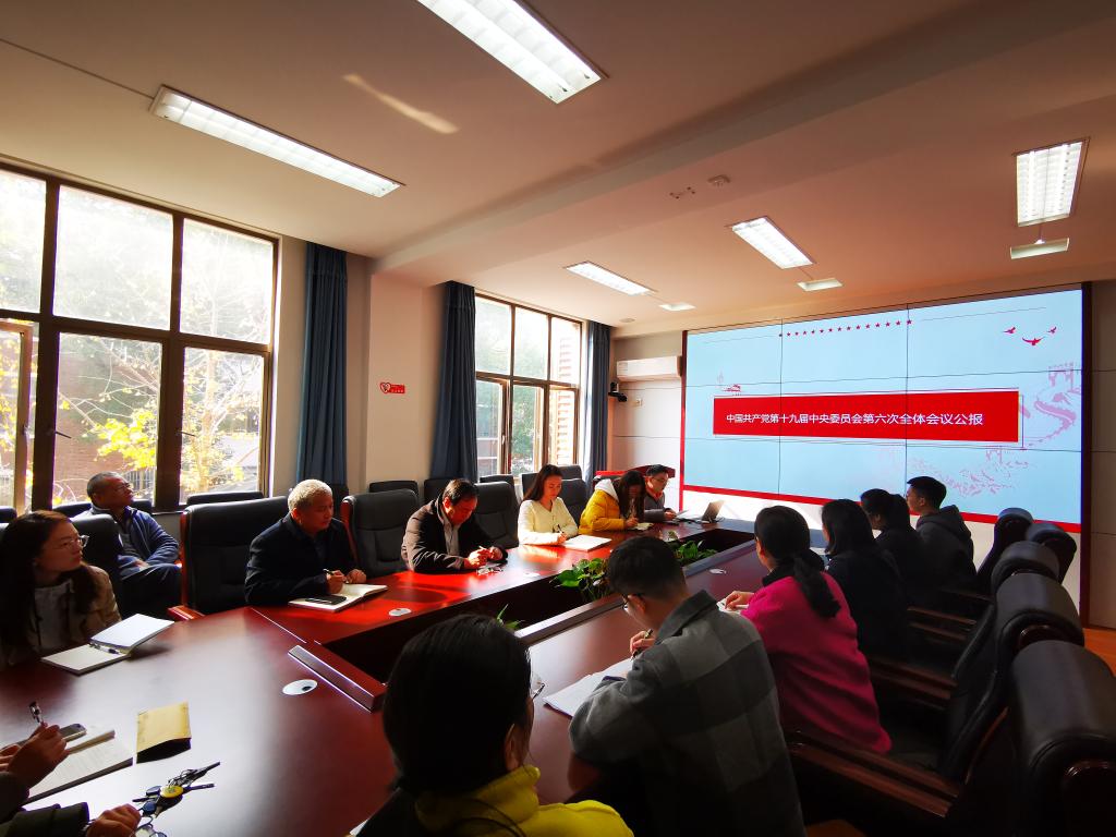 2021年11月29日,行政教辅党支部召开以“深入学习党的十九届六中全会”为主题的专题学习会议,学院团委书记周斌领学,支部全体党员参会。会议由支部书记谢君主持。