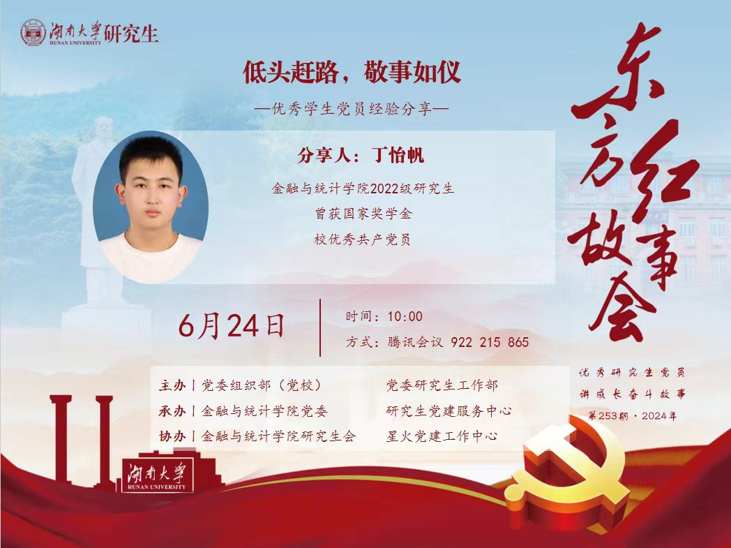 多年科研的训练,让丁怡帆能够有规划的、条理清楚地展开党支部工作。面对繁杂的党建工作,丁怡帆会在工作之初明确和规划好一年党支部的关键工作任务。他努力将金融专业特色融入支部党建工作,以观影、座谈和科研分享等形式组织各类党建活动,确保活动既能激发兴趣,也让大家在轻松氛围中获得启发。丁怡帆也因此获得海角 优秀党员荣誉称号。