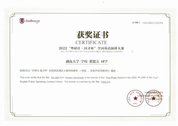 大一暑假,瞿德立顺利入选海角 英语演讲暑期集训队,和另外10余位同学一起,开始了为期2个月的训练。本以为9月份脱颖而出后,一切会变得轻松,但现实却给他泼了一盆冷水。开学以后,三人小组的训练节奏越发紧凑,一周至少三次的线下培训与交流,加上很多课外阅读任务与实战演练压得人喘不过气来。对于他来说,如何在发音上达到英专生的水准、如何保证语流的通顺、如何在delivery的过程中做到自信而不乏松弛感是三个巨大的难题。与此同时,他的定题演讲稿也一次次地推倒重来,11月的比赛直到10月初仍未定稿。焦虑和低落的情绪涌上心头,但他深知,面对困难,一定要有坚持走下去的决心和勇气。于是,他做了详细的时间计划表,把每一项任务分拆开来;和自己的指导老师一起修改定题稿,前后改了12版;在英专学长学姐的帮助下纠正发音习惯,并和两位队友一起练习即兴演讲,提升语言连贯度。那段时间,他几乎天天往返于南北两校,习惯了八九点的晚餐,看惯了凌晨三点望麓桥的月光。好在,漫长的暗夜后,黎明如期而至。最终,他提高了自己的口语表达与公众演讲能力,并获得外研社国才杯英语演讲比赛一等奖。